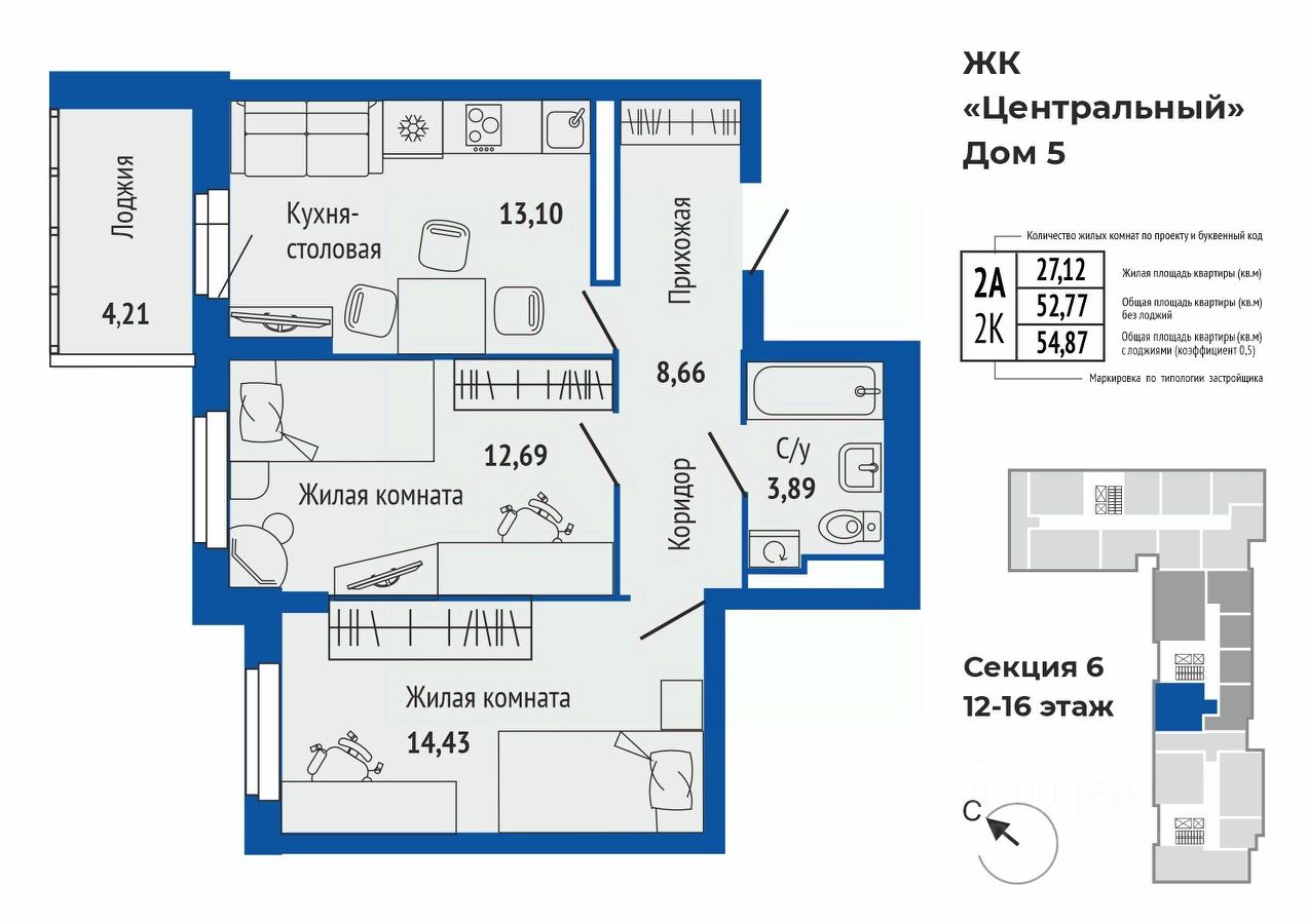 продам 2-к, Калинина, 33/5 стр.7 773 789 ₽
