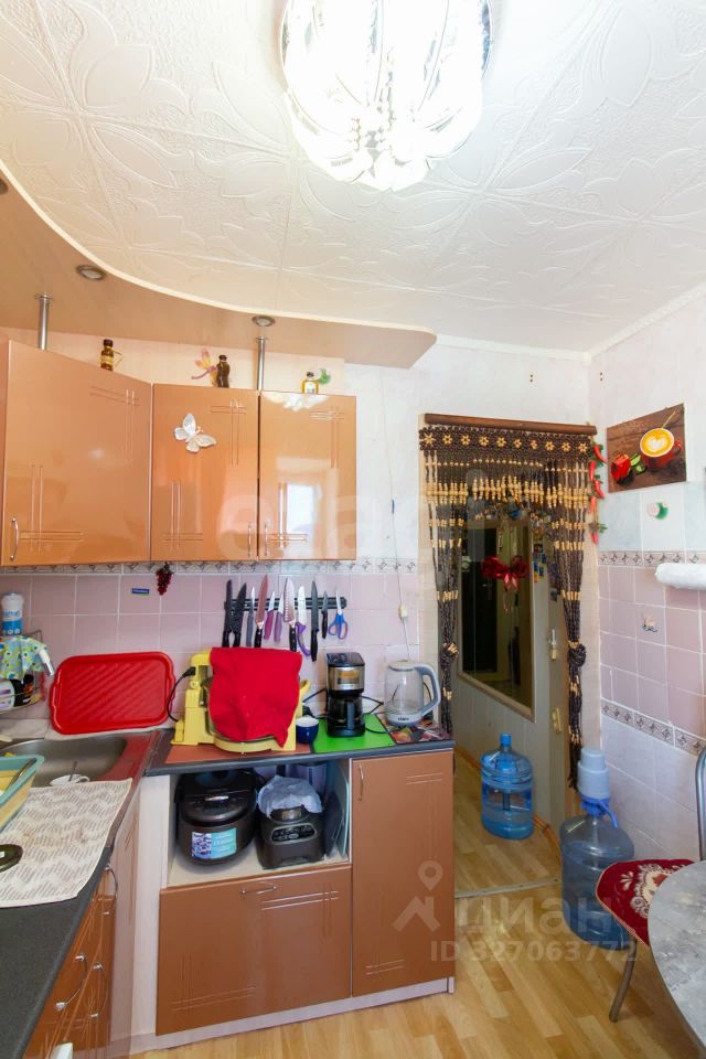 В квартире выполнен косметический ремонт, окна ПВХ, в комнатах натяжные потолки, на полу линолеум, балкон застеклен и обшит пластиковыми панелями. В подарок новому владельцу остается кухонный гарнитур и два шкафа-купе.