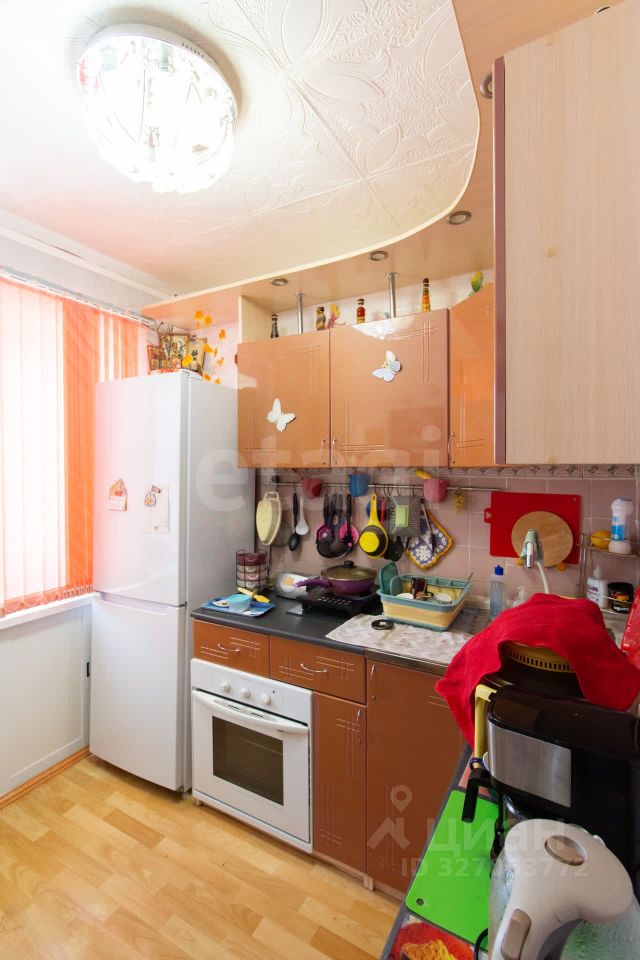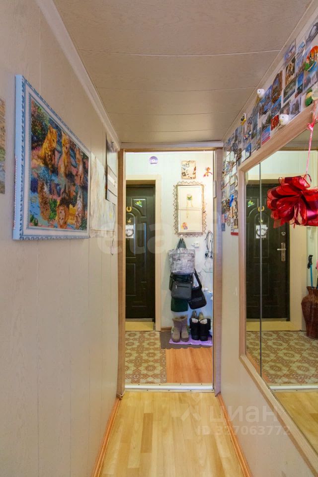 В квартире выполнен косметический ремонт, окна ПВХ, в комнатах натяжные потолки, на полу линолеум, балкон застеклен и обшит пластиковыми панелями. В подарок новому владельцу остается кухонный гарнитур и два шкафа-купе.